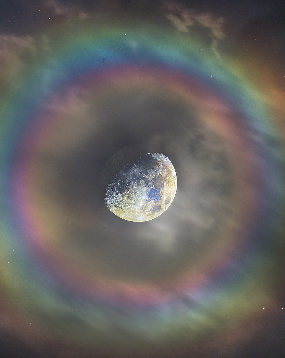 Panizza說:「我看到過好多次月華現象,但一直沒機會拍下來。」COVID-19期間他有更多時間去觀察天體,花2個小時才拍下這張令他滿意的照片。他補充說:「從晚上10點到凌晨12點,我拍了幾百張月亮的照片,月亮被彩虹光環圍繞,看起來非常美。」
