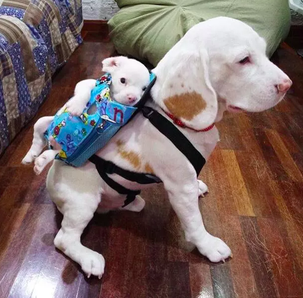 自己的物品自己背,這個小狗狗都很有擔當、很有責任感!這些小奶狗背著包包,一臉無辜的模樣,讓人聯想到要去上幼稚園的小朋友,讓人心都要融化了!