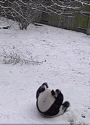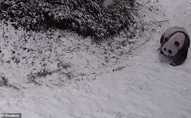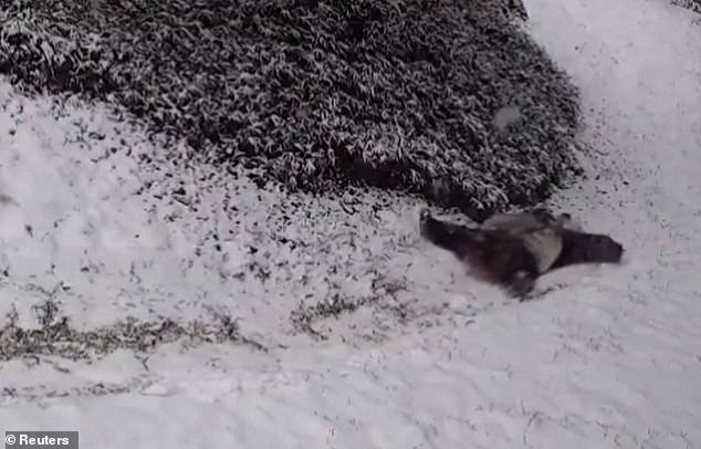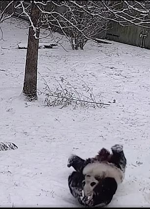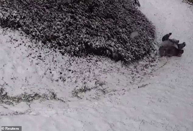 ▼動物園將貓熊在雪地裡玩耍的影片po到網路上,說:「溜滑梯、翻跟頭,這是屬於貓熊的快樂。美香、添添,下雪天快樂!」