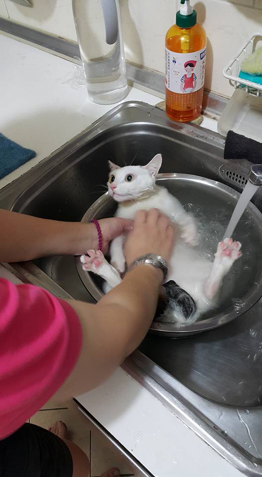 ▼可愛咪不僅沒有反抗、排斥,反而一副很享受的模樣,任由主人幫牠洗香香!