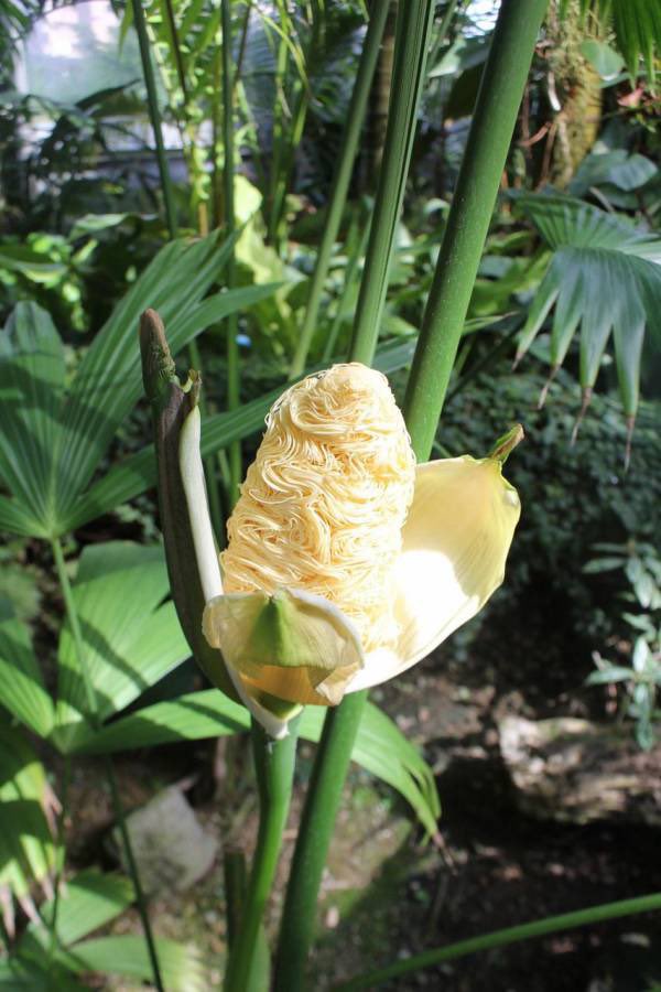 ▼原來,這種植物叫作「巴拿馬草」,原產於中美洲墨西哥至哥倫比亞一帶。巴拿馬草外觀酷似粟米,花苞中雌蕊和雄蕊以螺旋狀排列形成拉麵一樣的花穗。另外,巴拿馬草的葉子還是用來製作巴拿馬帽的材料呢。