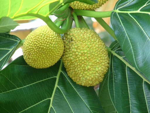 ▼「麵包樹」長出的麵包果烘烤之後像麵包一樣美味: