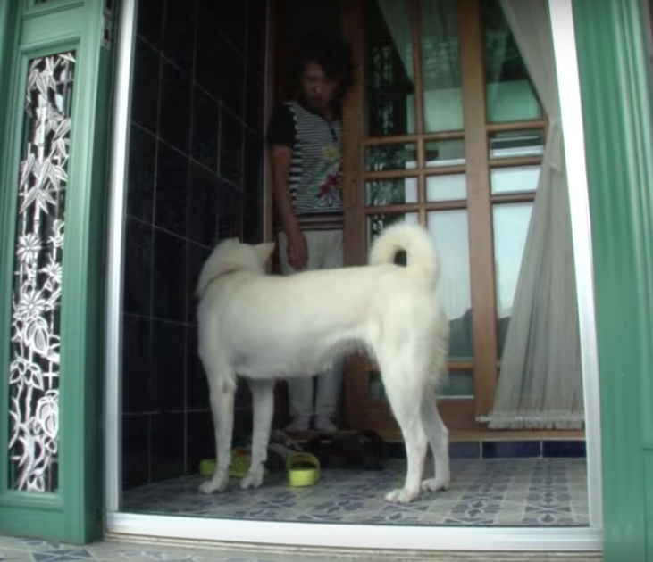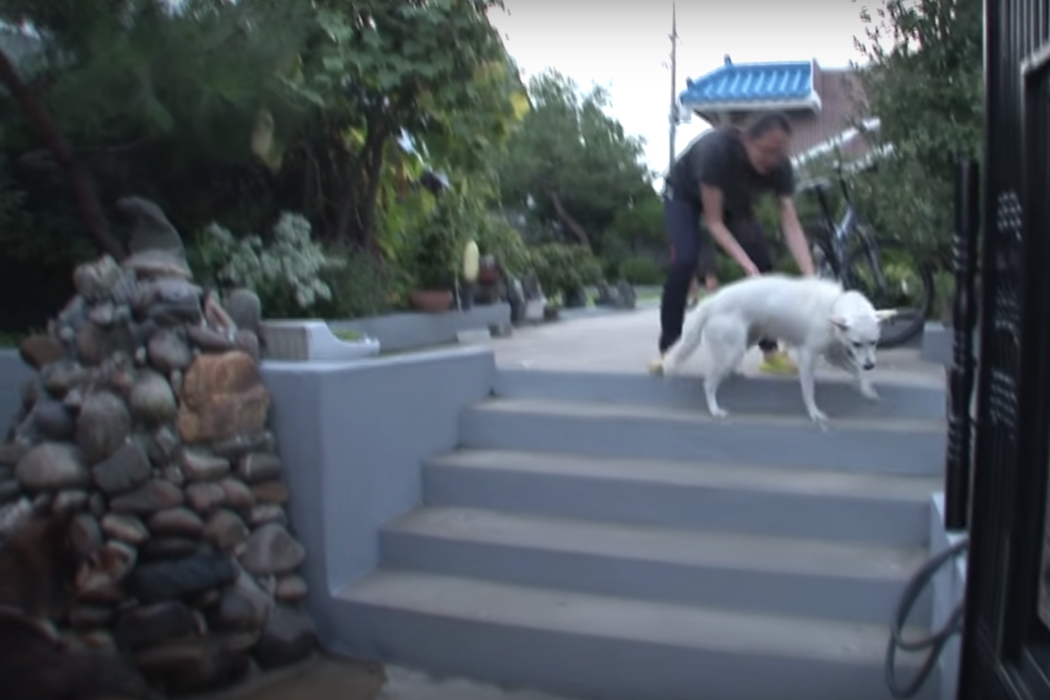 ▼Bbunsoon從這戶居民家離開後,很快來到另一戶人家。牠不停搖尾巴,似乎跟人家很熟悉,但很快就被趕了出來。之後牠又去了另外幾個家庭,結果都是一樣。Bbunsoon還會追逐行人,想獲得關注,但沒有人理睬牠,甚至兇狠把牠驅趕走。