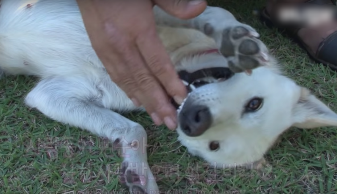 ▼男主人看到Bbunsoon卡在門下,只能開門放牠進來。Bbunsoon立刻衝進院子,在草坪上玩耍起來。牠跟男主人很熟悉,互動也很親暱。女主人無奈說,Bbunsoon並不是他們家的狗狗,他們已經有3隻狗狗了,沒有辦法再繼續收養浪汪,但Bbunsoon每天都會來,他們也沒辦法。