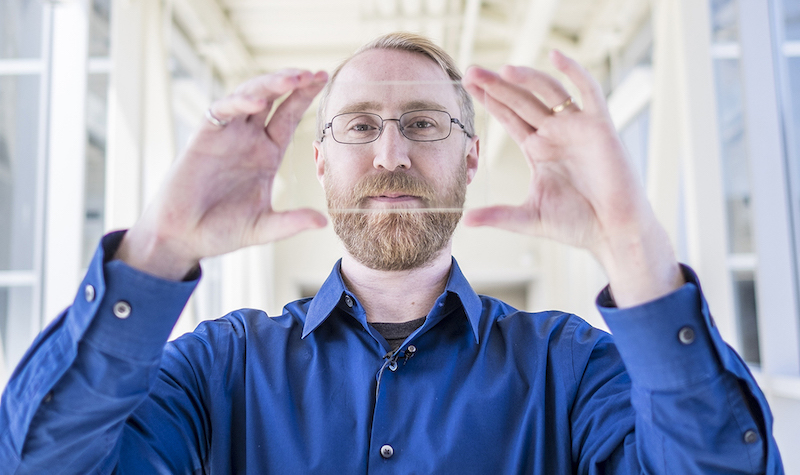▼過去有許多研究團隊也致力研發太陽能蓄電板,而密西根州立大學的團隊更聚焦在「透明」這件事上。他們所開發的太陽能蓄電板能一邊蓄集能源,一邊仍然讓太陽光穿透板子,保留一般玻璃原有的功效。