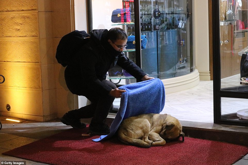 ▼Huseyin得到啟發,準備了更多毯子,下班後跑遍大街小巷,看到蜷縮在角落的毛孩,就將毯子蓋在牠們身上。