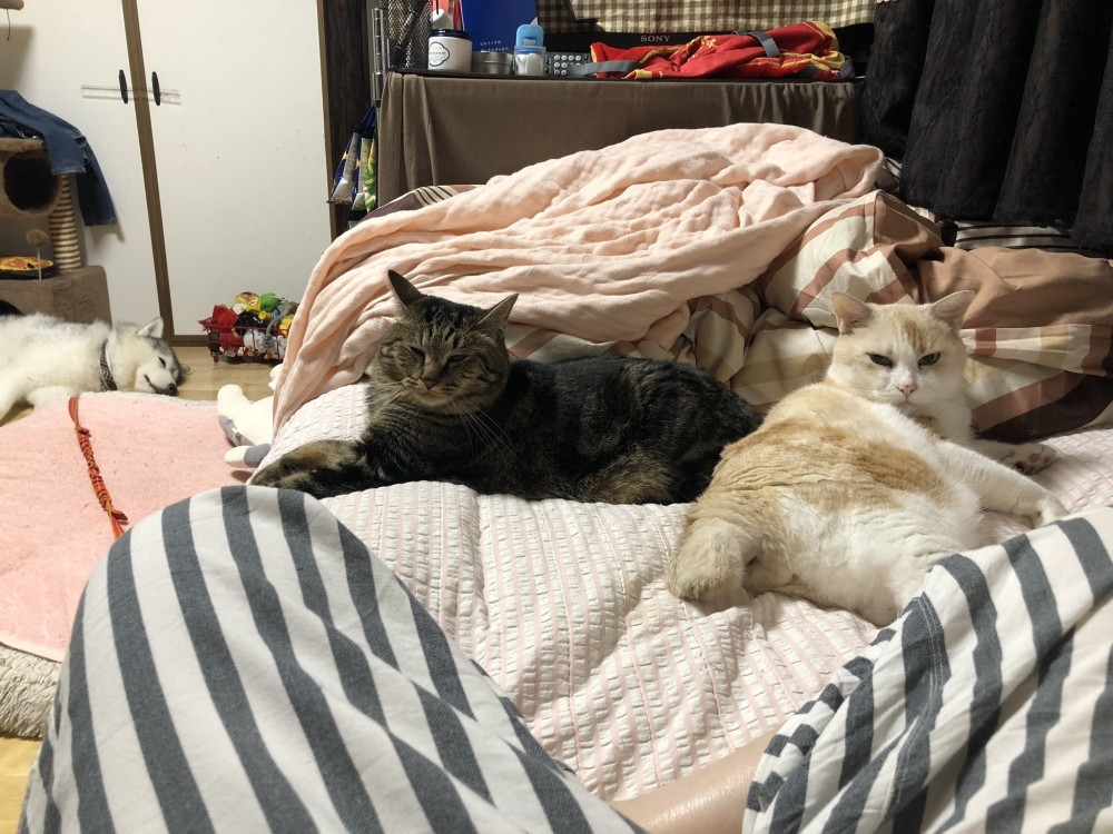 雖然浪費了新床,但是想想可以窩在一起睡搞搞,感受到最大的幸福感就不用太計較了啦~比起小床,貓皇還是喜歡「大龍床」吧?
