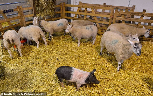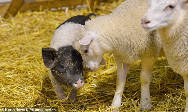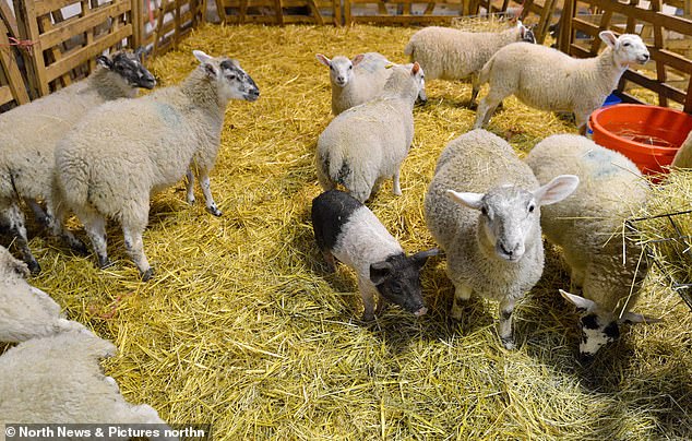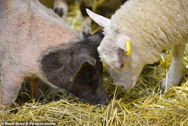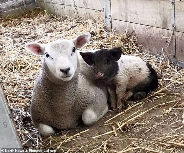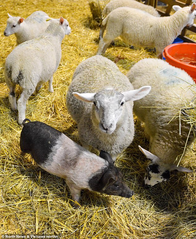 ▼有人將Alistair與綿羊一起玩的照片po到網路上,引起了很多網友的關注,還有一些人專門到農場來,就是為了看看這隻特別的小豬。
