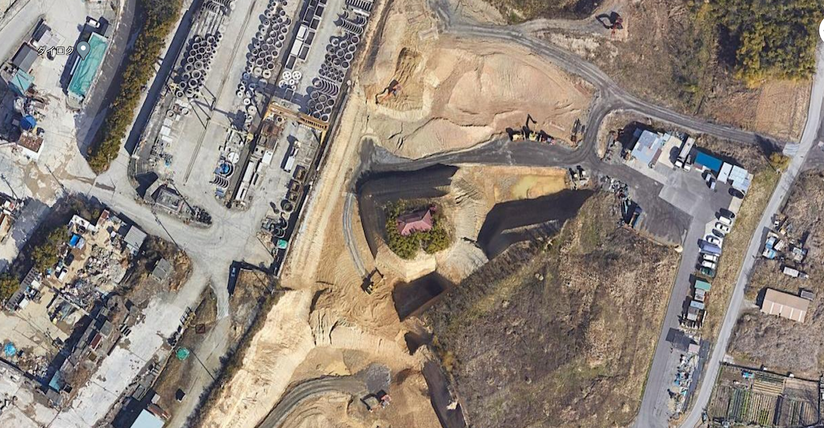 2021年02月11日Google Map的街景功能是很多「路癡」最愛用的神器,除了找路,一些網友經常能從中發現有趣的「彩蛋」!最近一張街景截圖在日本推特上瘋傳,從圖片中可以看到,一個「土堆」上有一棟孤零零的建築。這似乎是一個礦坑,那座建築顯得格外突兀。