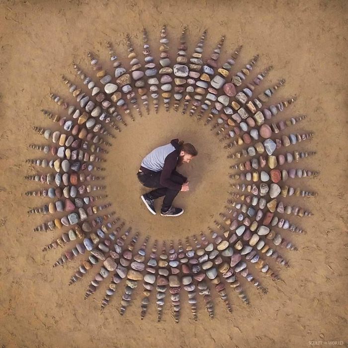 2021年02月10日住在英國彭布羅克郡(Pembrokeshire)的Jon Foreman是一位大地藝術家。他讀大學期間了解到這種在自然界創作的藝術形式,深深為之著迷。他撿來大大小小的石頭,在沙灘上擺成一圈,最後完成的作品竟然非常療癒。