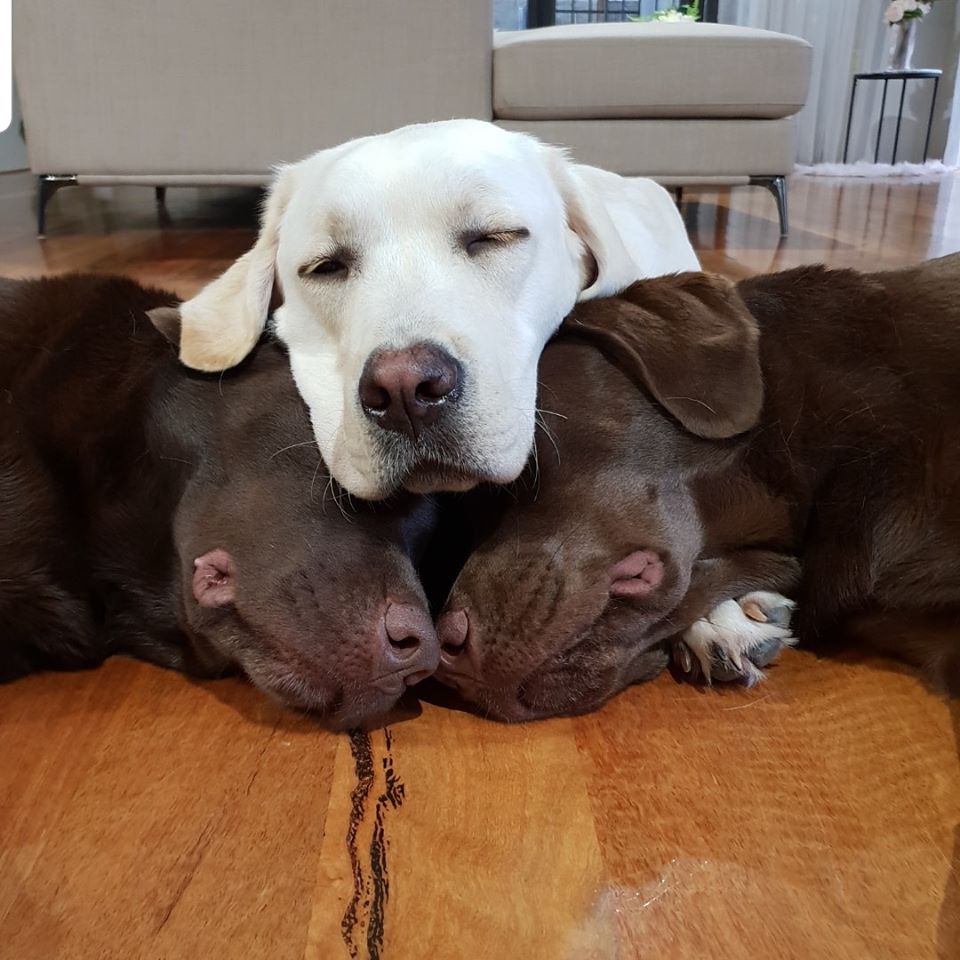 2021年02月11日Willow、George和Henry是三隻可愛的拉布拉多,牠們一起生活在澳洲的一個家庭中。三隻狗狗的主人是一對充滿愛心的夫妻,陪伴牠們一起長大。如今5歲的Willow、3歲的George和2歲的Henry還像小時候一樣一起睡覺覺,看到牠們一起睡著的畫面主人都被感動了。