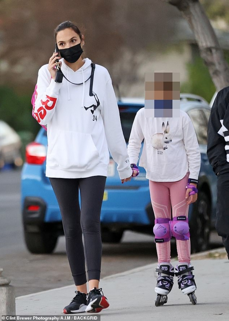 ▼蓋兒加朵身高178公分,她身形纖細,但線條緊實,因為有運動的習慣,看起來非常健康、充滿力量感。最近她在美國加州Studio City,帶著9歲女兒Alma出門溜滑輪。母女兩人都戴著口罩,蓋兒加朵穿著簡單的運動裝,健美的身形非常亮眼。
