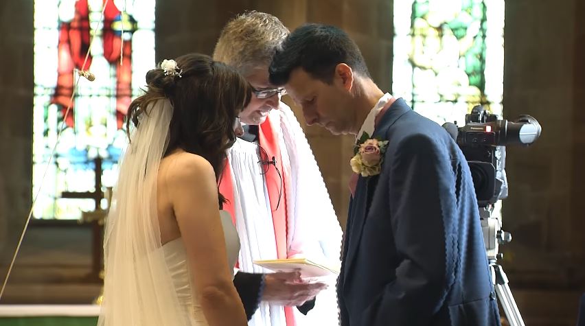 2023年07月13日這場婚禮太有創意了!新人在結婚前都會好好籌備,希望婚禮能夠浪漫順利,成為人生中最美好的一天。但英國這對新人在婚禮過程中卻遇到了問題,他們準備交換戒指的時候,新郎到處往自己的身上摸,卻發現戒指不見了。原來他早上出門的時候把戒指放在家裡了!