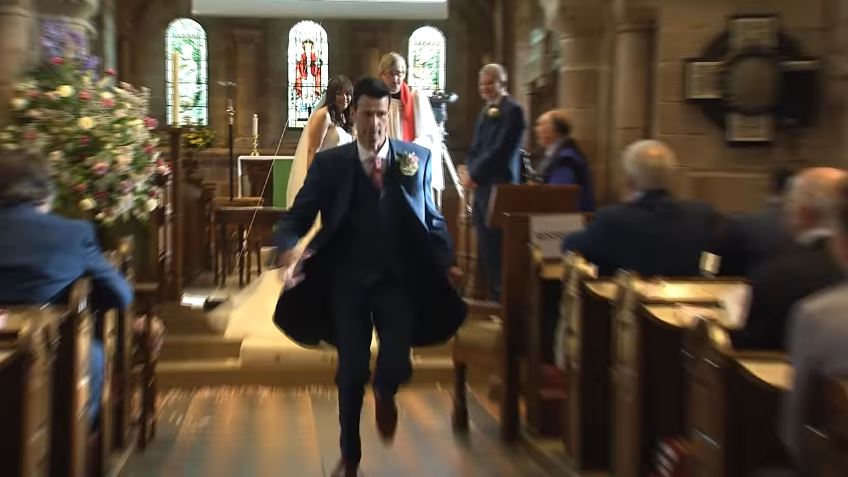 ▼新郎當場拋下新娘和親友,轉身衝出教堂。他讓現場的來賓等等他,他準備跑回家拿戒指。新娘沒想到自己的婚禮會出現這樣的差錯,一時反應不過來,只能眼睜睜看著自己的新郎跑掉。