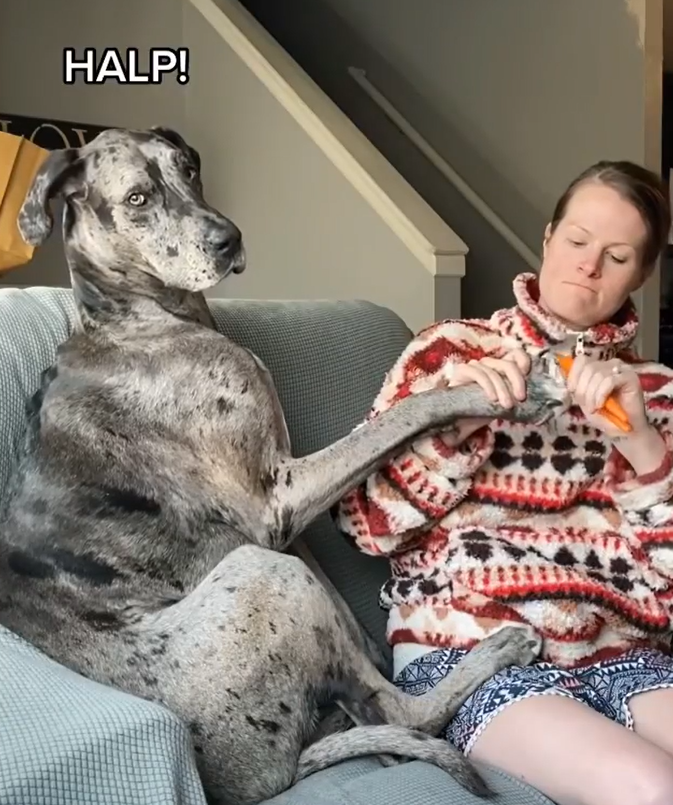 大丹犬剪指甲秒變小可憐! 開啟「談判模式」撒嬌求情樣樣來:看我的眼神~