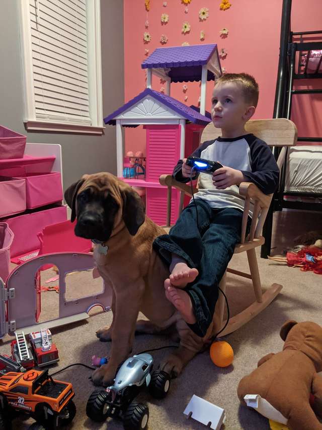 小主人抱著狗頭面壁思過的畫面很有趣,Dash是一隻很講義氣的狗狗,Peyton成長過程中有牠陪伴非常幸福呀。