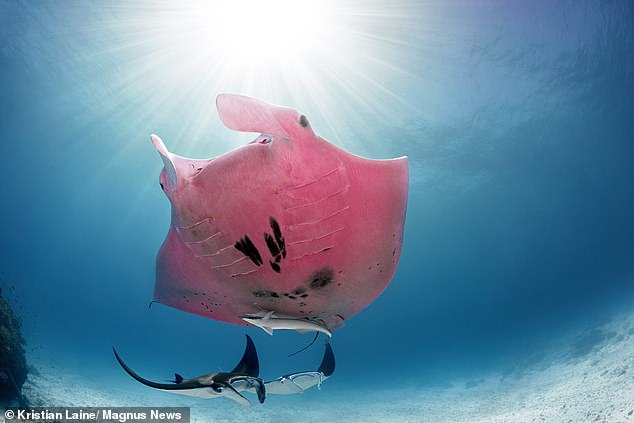 魔鬼魚是世界上最大的魟魚,Inspector Clouseau足足有3公尺長、2噸重,平時在艾略特夫人島附近生活。牠是目前唯一發現的粉紅色魟魚,Laine能夠拍到這一系列照片非常幸運呀。