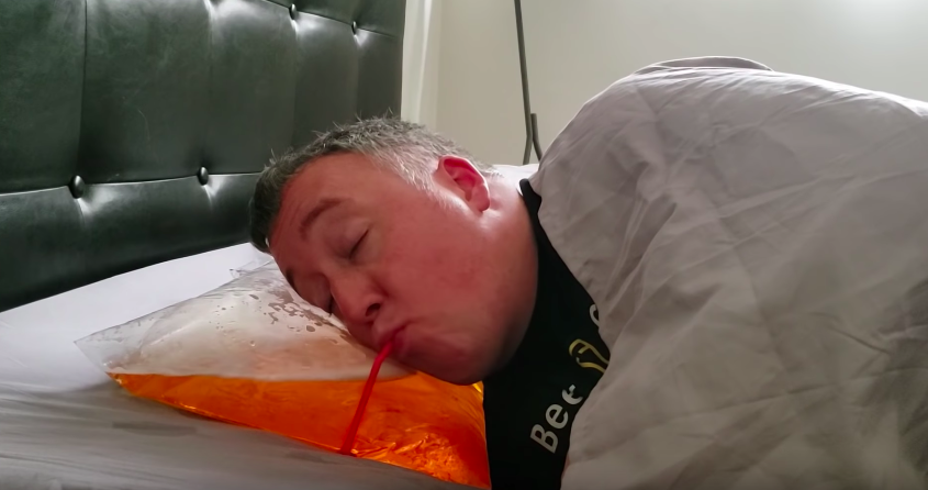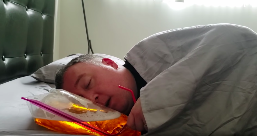 睡夢中也想喝!天才男自製「啤酒枕頭」 醒來隨時都能嚐一口~
