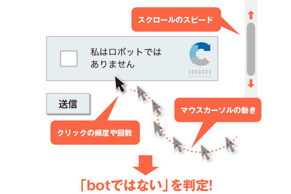 ▼所以這個「我不是機器人」到底是怎麼運作的呢?原來「reCPATCHA」並不是在你點選打勾那瞬間判斷,而是在你進入網站的那一刻起,就一直在記錄你的IP位址、滑鼠移動軌跡、捲軸滾動方式等;而在你點選「我不是機器人」的時候,這些資料就會上傳到資料庫中,藉此來辨別你到底真正的人類,還是來搗亂的惡意程式。
