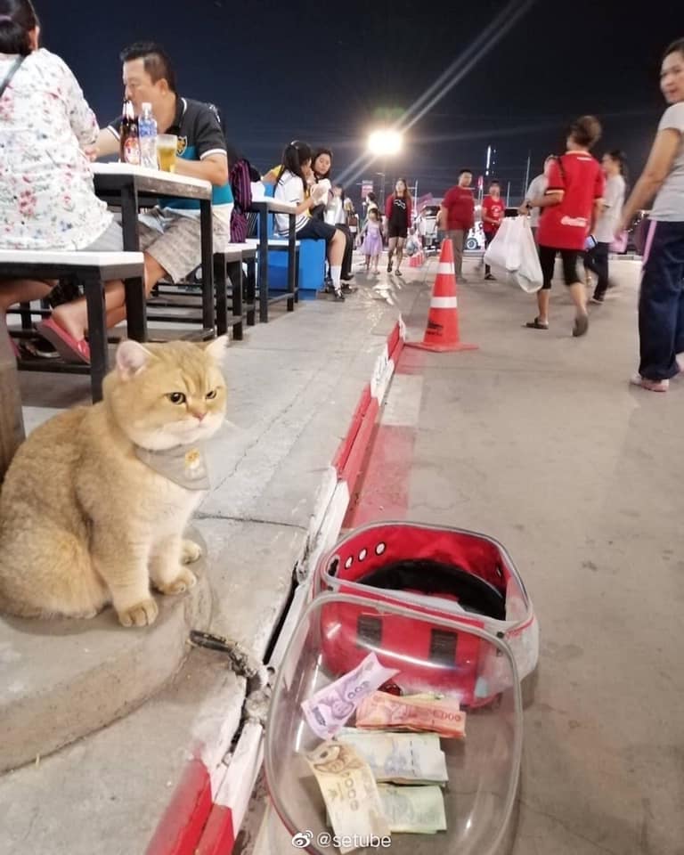 肥橘喵「在路邊乞討」卻被身材出賣 網友笑歪:誰會相信你啊?
