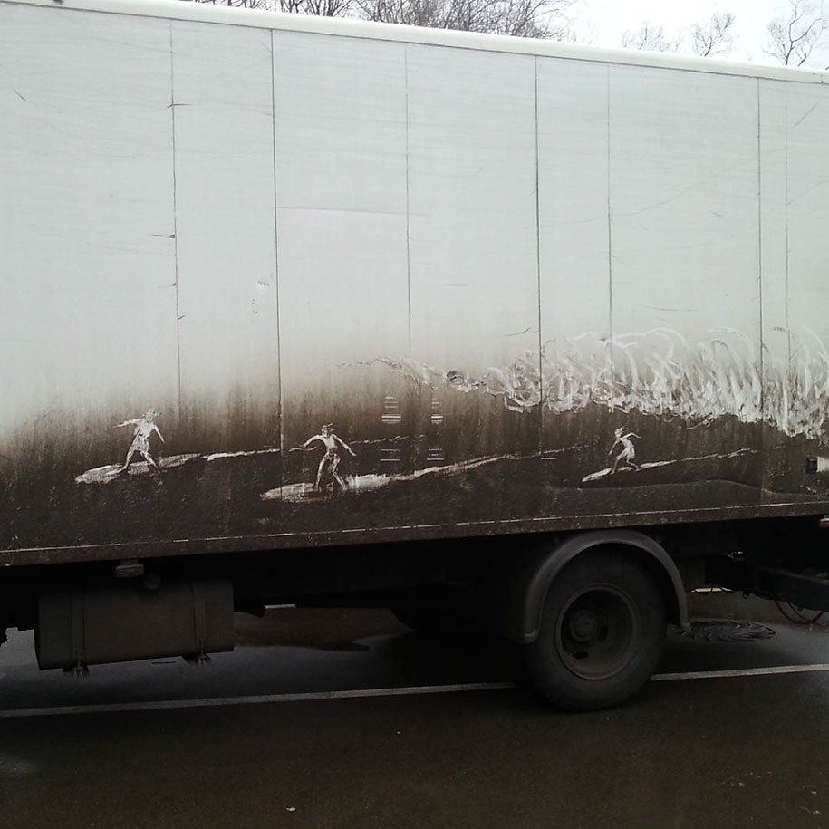 ▼Nikita很喜歡在髒兮兮的車上作畫,這些作品讓人驚艷,也非常短暫。