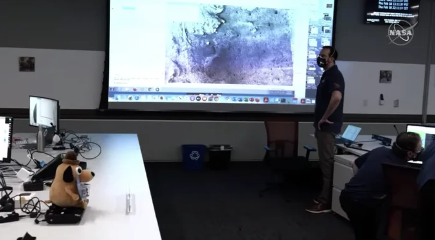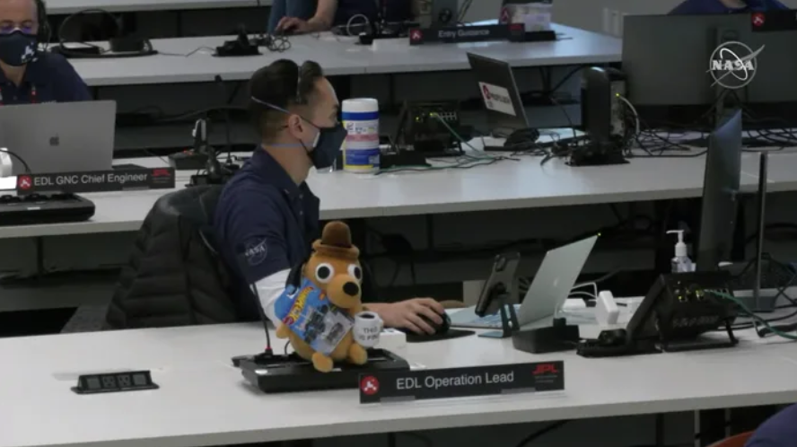 ▼這隻狗狗玩偶帶來了好運氣,毅力號果然登陸成功了!網友們看到後紛紛表示:「好可愛的玩偶」、「我也想要一個」、「這個玩偶能帶來好運氣嗎」、「它也是團隊的一員」、「它也在為毅力號成功登陸開心。」