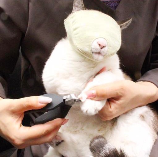 ▼很多貓咪看到指甲刀就怕得不行,好像通過視覺能把感覺放大好幾倍一樣。戴上這款頭套後,貓咪看不到剪指甲的畫面,就不會逃避、掙脫啦。