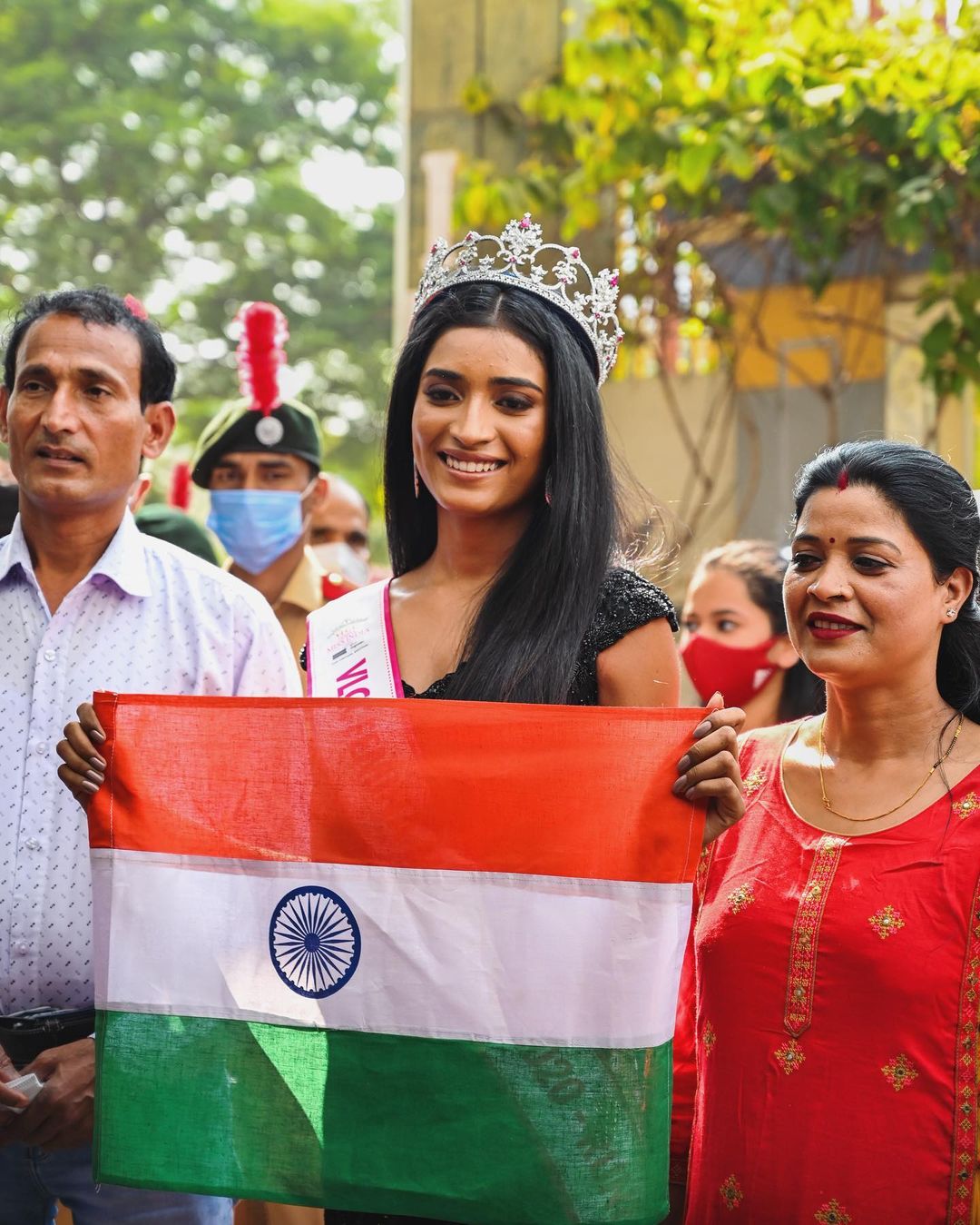 ▼Manya獲得選美比賽亞軍後,特別戴著后冠跟父母合照。她的爸爸感動說:「我好像得到了一輩子的快樂!」Manya接受採訪時說,以前她家非常貧窮,親戚們都會避開他們,現在這些親戚竟然都來拜訪。她覺得有些無奈,但父母因為自己而受到尊敬,這也算一件好事。