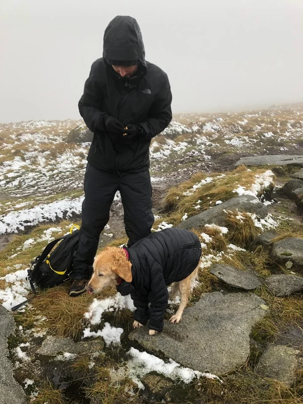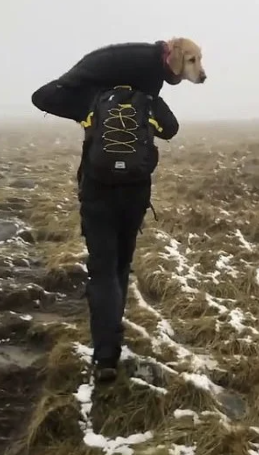 2021年03月04日感謝好心人的幫忙~愛爾蘭有一對情侶Ciara Nolan和Jean Francois Bonnet,日前他們到威克洛山脈爬山時,竟在山頂附近發現了一隻黃金獵犬。這隻狗狗似乎迷路了,不知道在山上待了多久。Ciara和Jean沒有見死不救,他們決定將狗狗背下山。