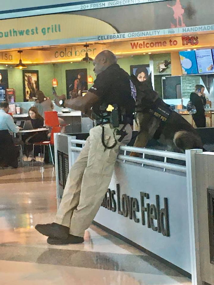 2021年02月28日忠誠、勇敢的警犬不僅是狗狗,還是員警心中的最佳拍檔。網友Gina Anzaldua Stevenson在美國德州達拉斯愛田機場看到了超有愛的一幕。一位員警和警犬大玩自拍,員警每拍一張照片都會拿給旁邊的警犬看,還問牠對照片滿不滿意。Gina覺得這一幕很可愛,就忍不住拍照紀錄下來。