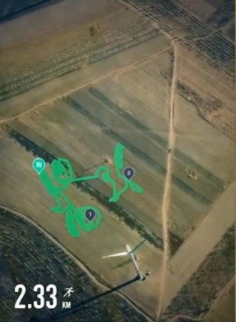 ▼吳姓男子喜歡畫畫、跑步,之前他在網路上看到了「跑圖」,有網友利用跑步app紀錄移動路線的方式,在地圖上作畫。他決定用「跑圖」來紀念吳孟達,先在手機上設計出草圖,再放大到地圖上約5公里大小,然後照著地圖上的路線跑步。他花1小時45分鐘跑了近6公里才完成。