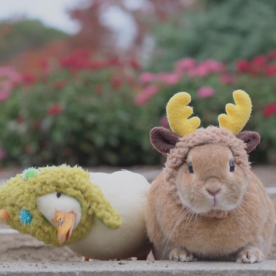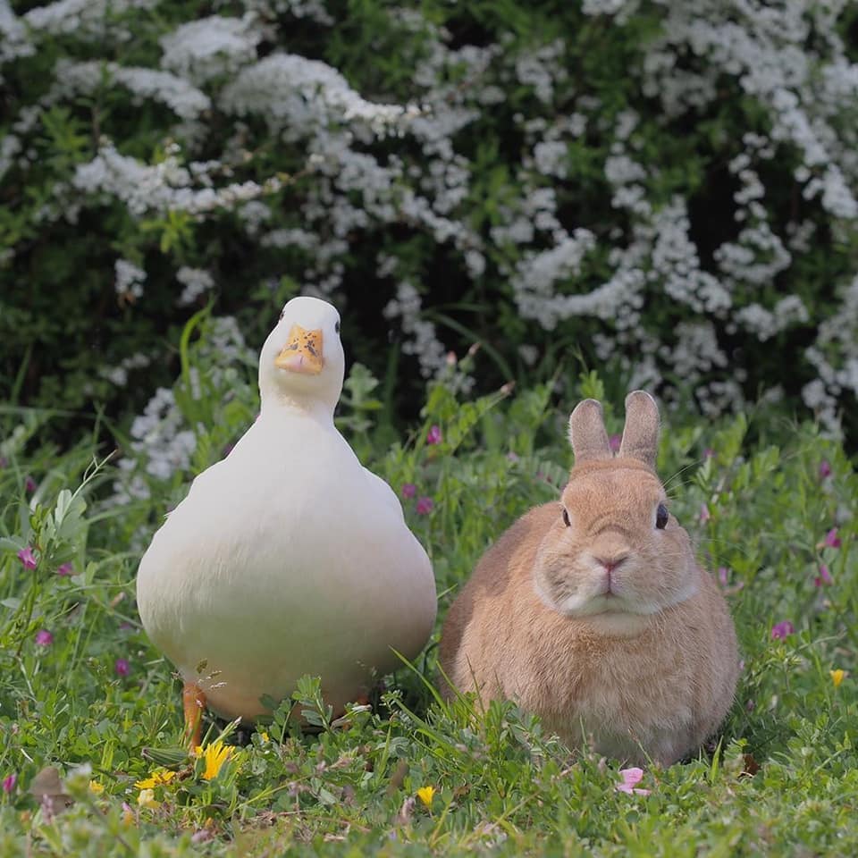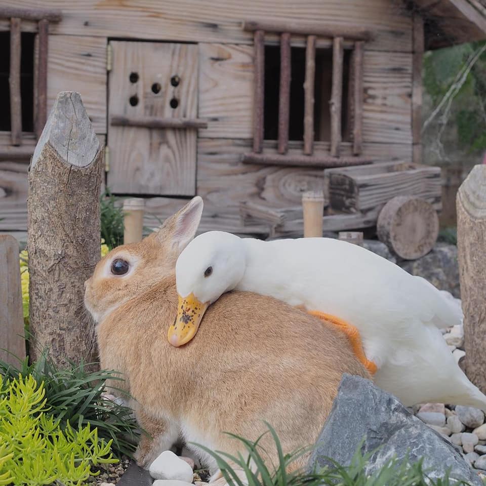 鴨鴨(Instagram)和兔兔(Instagram)的友誼夢幻溫馨,不同物種的動物也能和平相處、感情深厚,這樣的互動暖暖的好甜美!