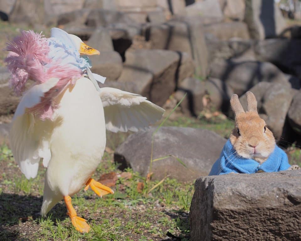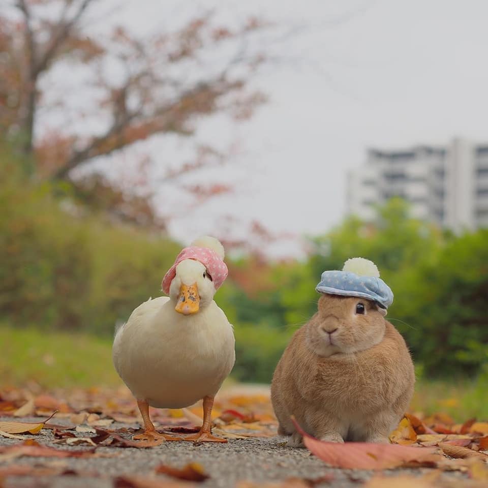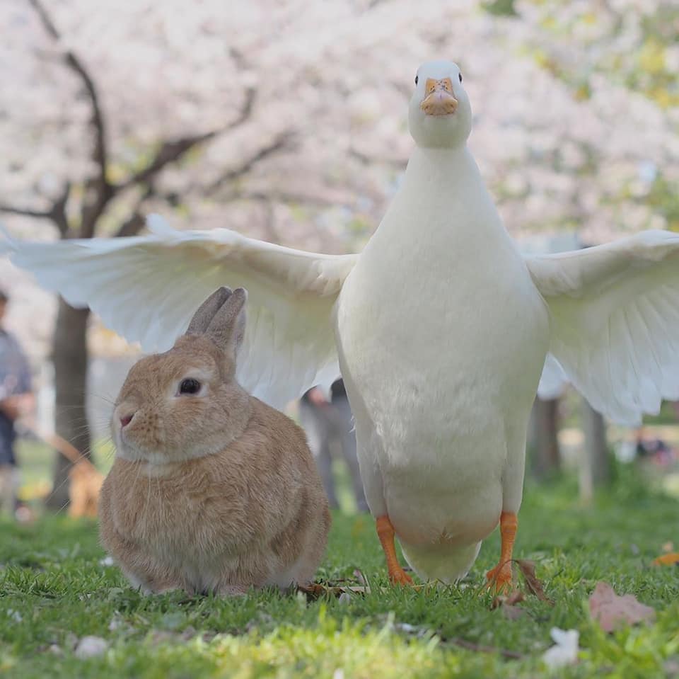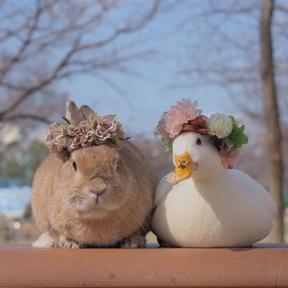 鴨鴨(Instagram)和兔兔(Instagram)的友誼夢幻溫馨,不同物種的動物也能和平相處、感情深厚,這樣的互動暖暖的好甜美!