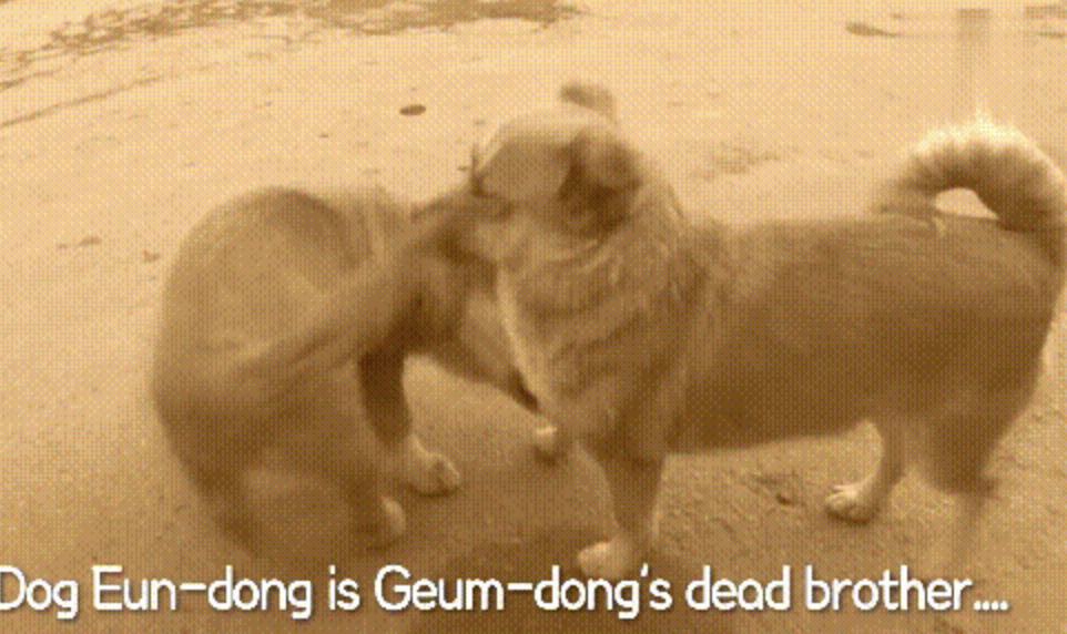 ▼有一天恩東發生車禍離世,主人將牠埋在小樹林裡。當時金東也跟著去小樹林送別恩東,所以牠知道自己的好友長眠的地方。自從恩東離世後,金東非常消沈,幾乎不吃不喝,整天都躺在那裡,看上去讓人很心疼。