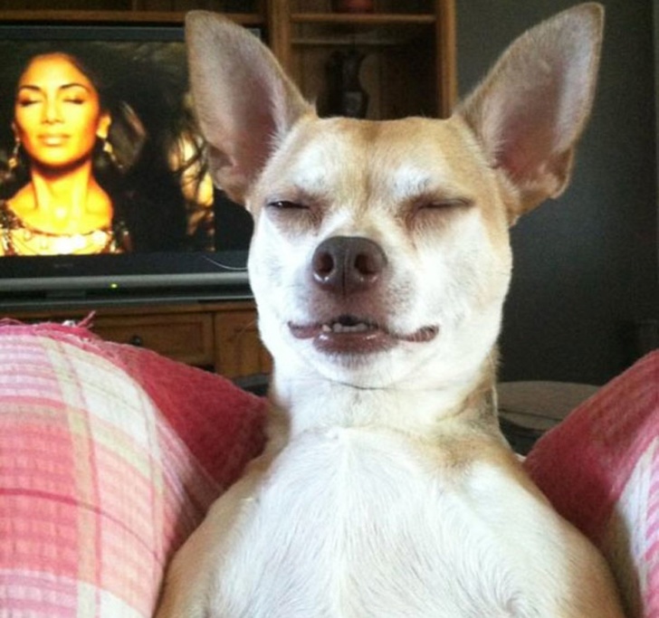 ▼狗狗的表情和電視裡演員的表情幾乎一模一樣。