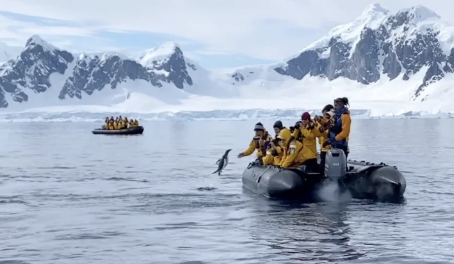 滿滿求生欲!企鵝躲避虎鯨追捕 「信仰之躍」跳上滿載遊客的小船