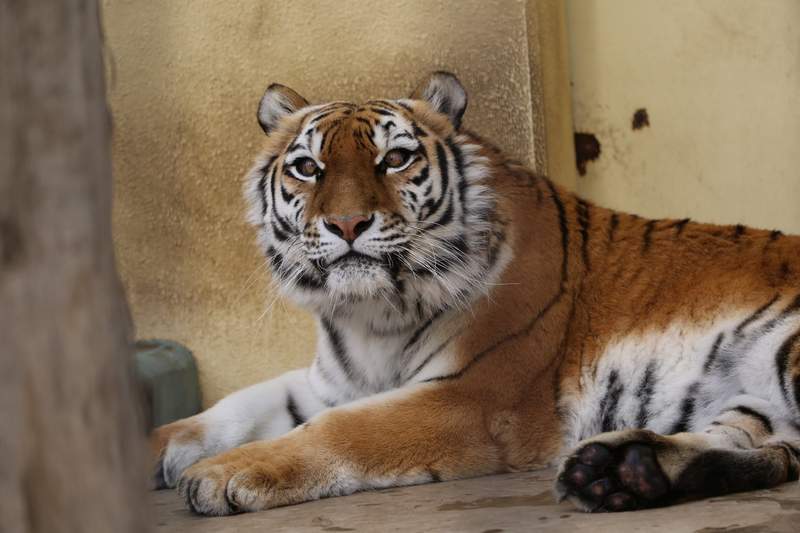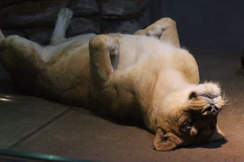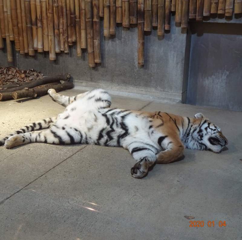 釧路動物園のアムールトラのココアちゃん。なぜか何十分以上も、このポーズのまま過ごしてました。くつろげる格好なのかな。#釧路動物園 #アムールトラ #ココア pic.twitter.com/7DoNoVYQF0