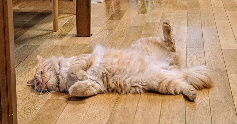 ▼網友們都被Cocoa絕妙的平衡感、搞笑的睡姿逗笑,紛紛表示:「Cocoa會有這種睡姿是因為沒有天敵,安心無防備才會露出肚子吧。跟我家的柴犬一樣。」