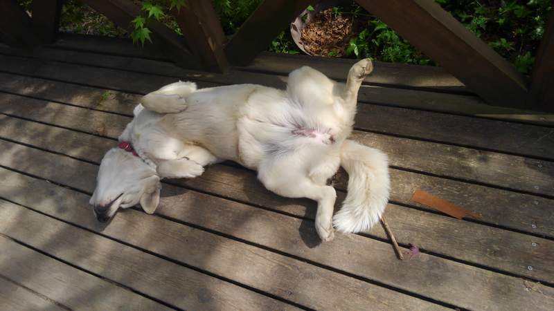 ▼「我家狗狗也是這種睡姿睡覺。據睡姿診斷代表『對這個環境非常安心』的樣子(笑)」