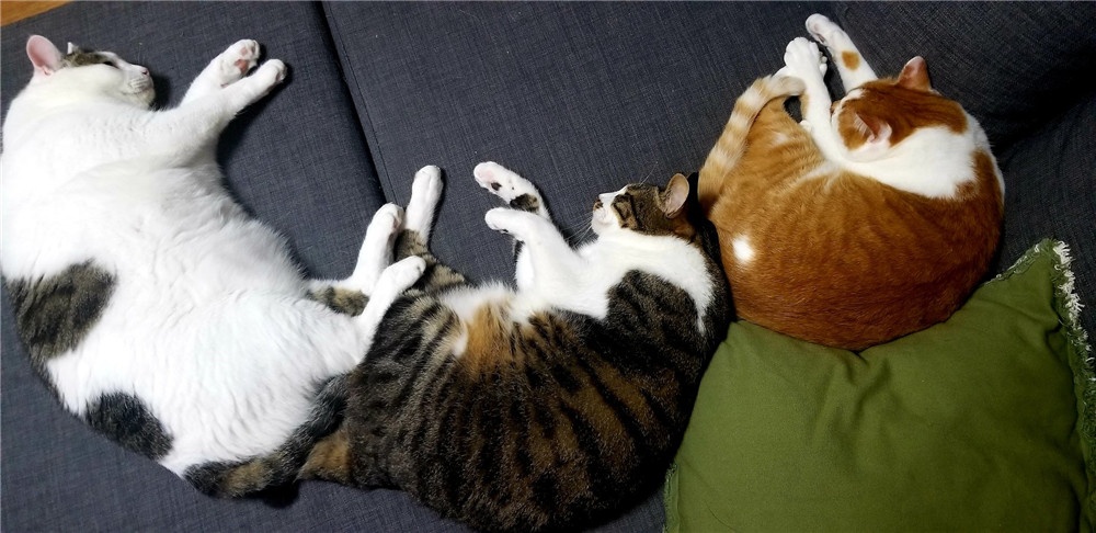 ▼網友們看到照片都覺得很有趣,紛紛po出自家喵星人、汪星人的對比照。原來有那麼多同一天出生的兄弟姐妹小時候相像,長大後體型卻有了巨大的差別:「我家這三隻明明也是一起出生的,結果體重分別是9公斤、6公斤、4公斤,哈哈哈。」