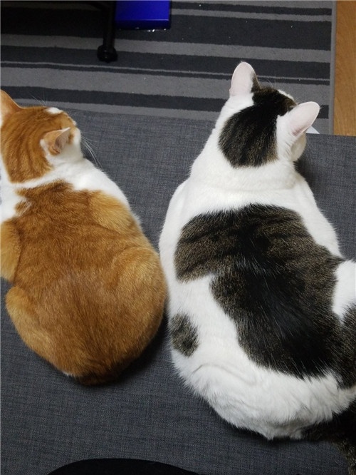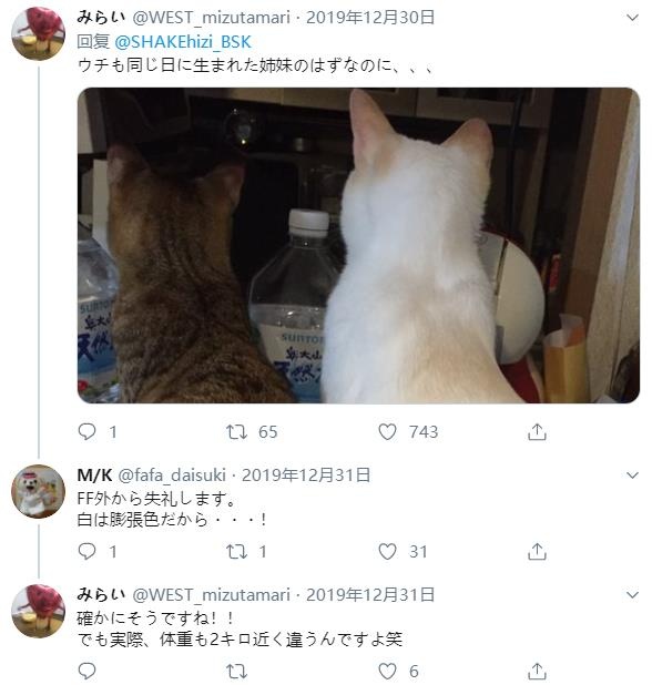 ▼「也是同一天出生的雙胞胎姐妹,是因為白色是膨脹色嗎?!並不是,白貓真的更胖了有2公斤……」
