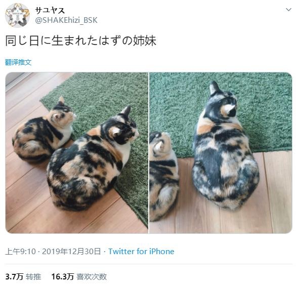 同天生花貓姊妹「一個胖成球、一個小不點」 貓奴超困惑…網解釋:我家有同款