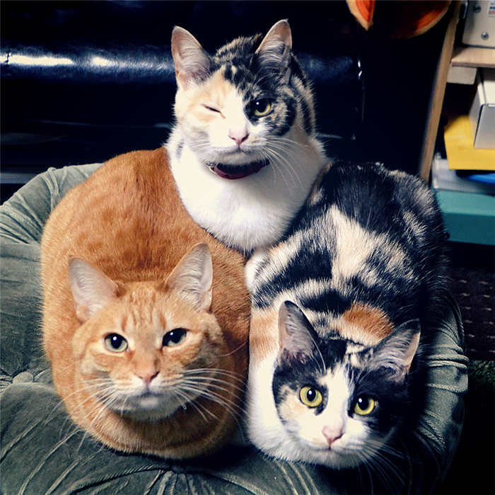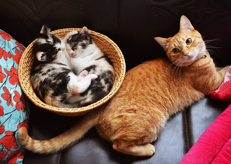 ▼這對花貓姐妹是同一天出生的,由同一隻橘貓前輩一手帶大。牠們吃同樣的東西,生活環境也一模一樣,但在成長的道路上卻南轅北轍。