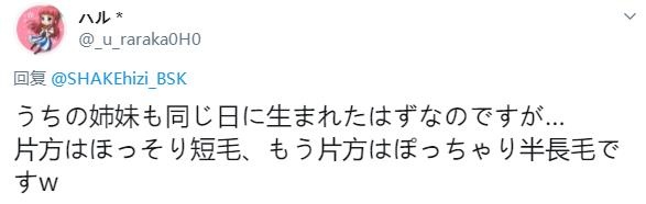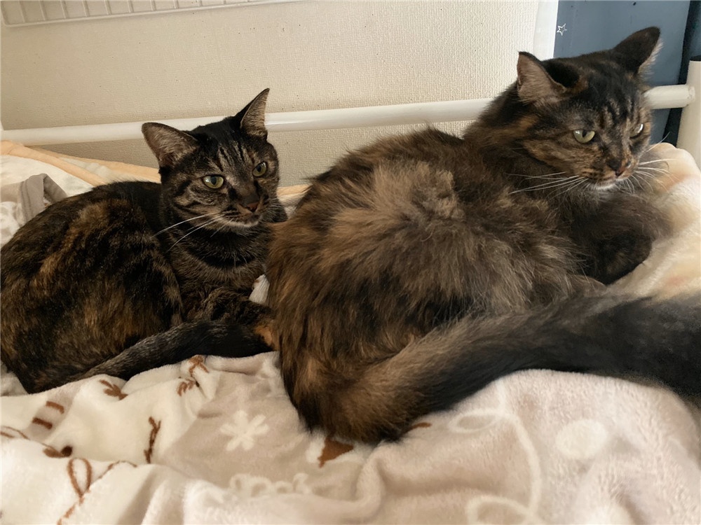 ▼「我家的貓咪姐妹也是同一天出生的……但是一隻是苗條的短毛,另一隻是豐滿的半長毛,哈哈!」