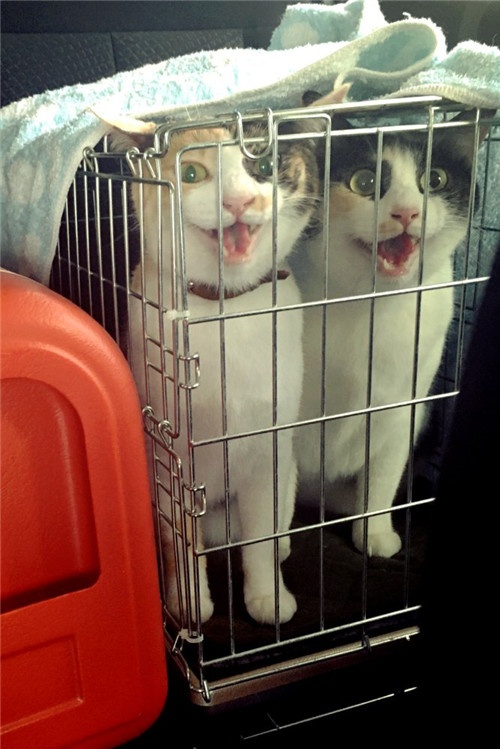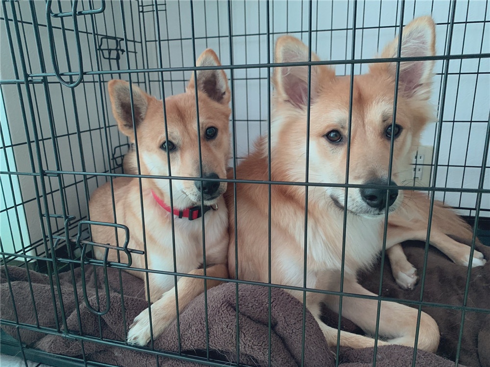 ▼「我家的兩隻汪星人,體重分別是14公斤和20公斤。牠們可是如假包換同一天出生的狗狗兄弟啊,哈哈。現在看毛髮和體型都不一樣了!!!※當時家裡正在整理衛生,所以把牠們暫時請進了籠子裡,不要誤會,哈哈。」