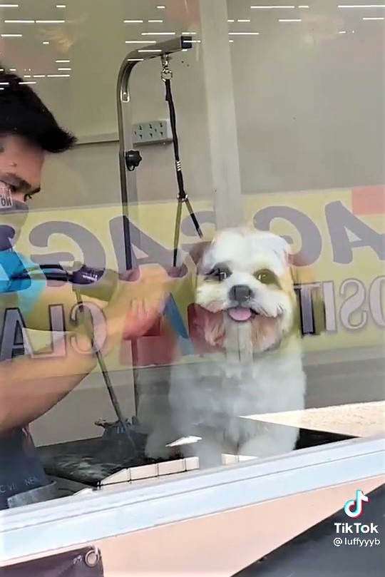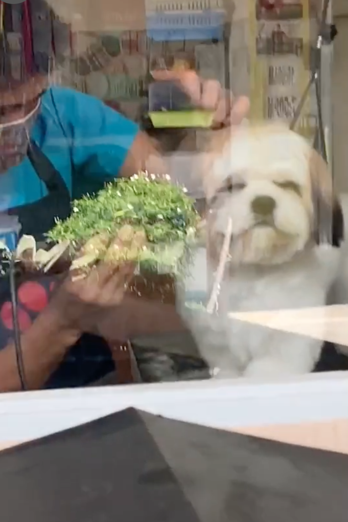 西施犬剪毛剪到愛睏! 轉頭看「馬麻來接」瞬間笑靨如花:偶有沒有變帥帥~