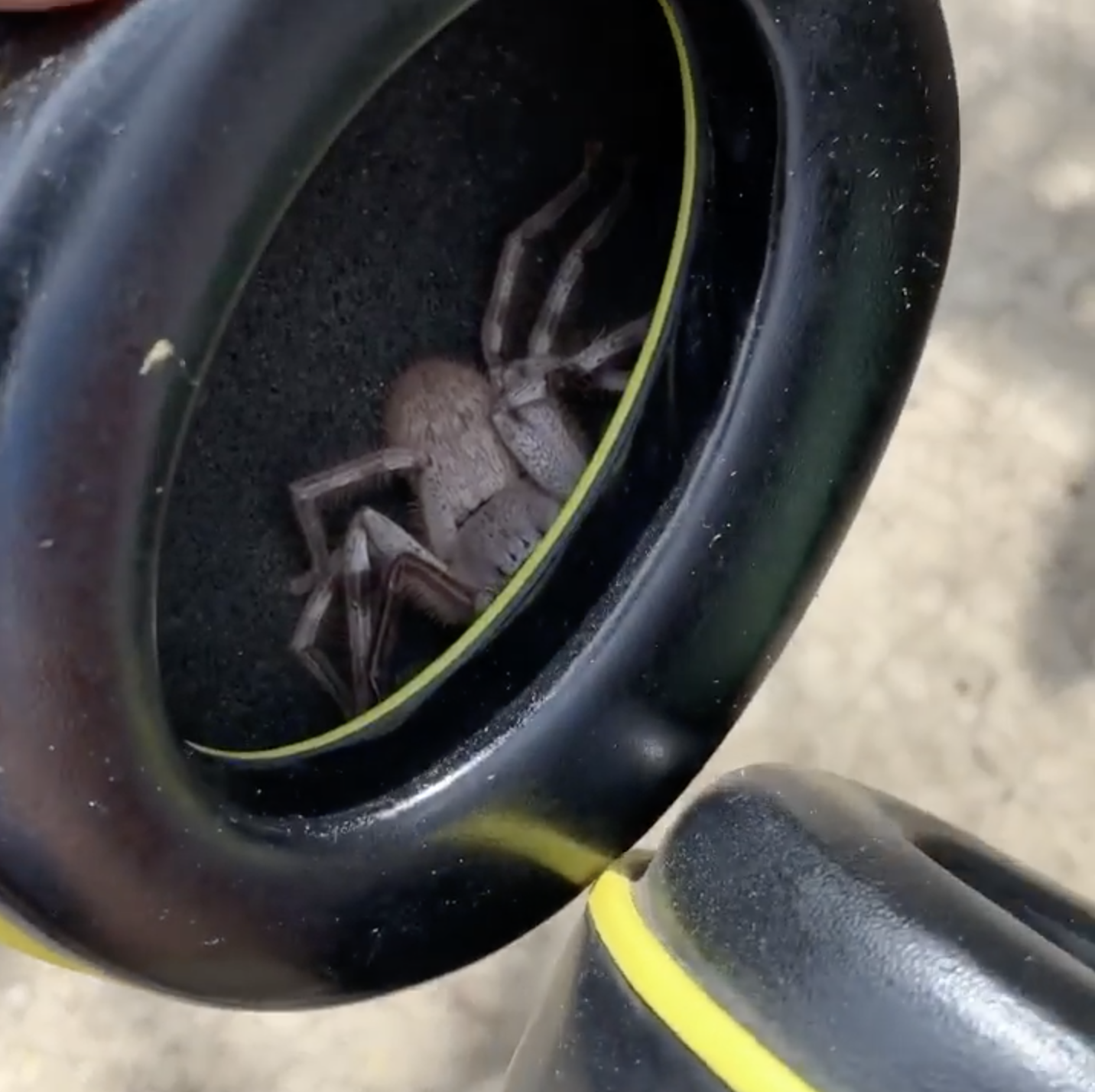 ▼Hurst的耳機裡藏著一隻獵人蛛(huntsman spider)。蜘蛛縮在耳機裡,Hurst搖晃、敲打,牠都不肯離開。Hurst無奈說:「真討厭,牠不願意出來,可能在裡面待得很開心吧!」
