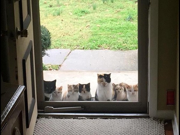 ▼除了Tara外,別的網友也有同樣的經歷。國外一對老夫妻餵過家門口的浪貓後,就被附近所有的浪貓盯上了,每天都有好幾隻貓咪來討食。剛開始他們還能應付,後來貓咪越來越多,還在他們家門口排排坐,那緊迫盯人的眼神讓人心裡發寒。