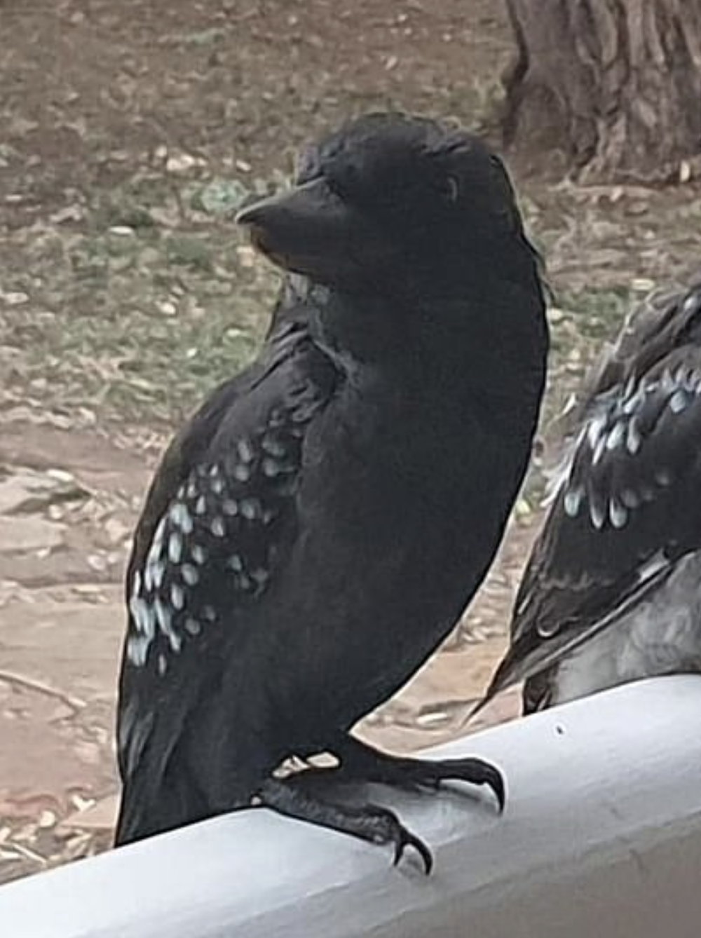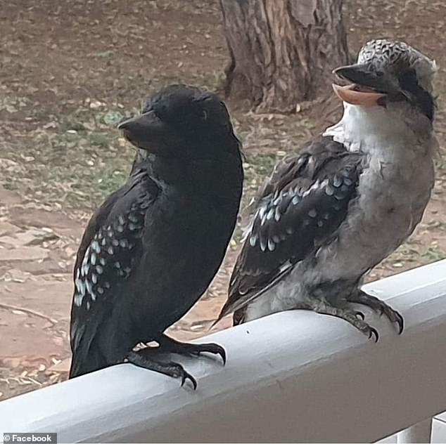 ▼從照片中可以看到,欄杆上停著2隻笑翠鳥,其中一隻羽毛顏色正常,另外一隻全身的羽毛卻是黑色的,只有翅膀上有一些淺色的斑點。網友們看到後紛紛開玩笑說:「牠是從煙囪裡飛出來的吧」、「浴火重生的笑翠鳥」、「笑翠鳥媽媽被烏鴉騙了」。