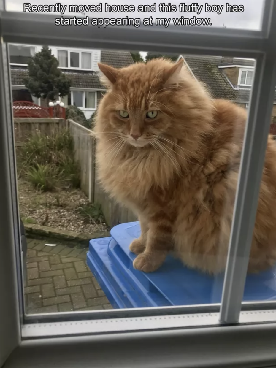 ▼剛剛搬到新家,這隻毛茸茸的小傢伙總是透過窗戶往裡看。